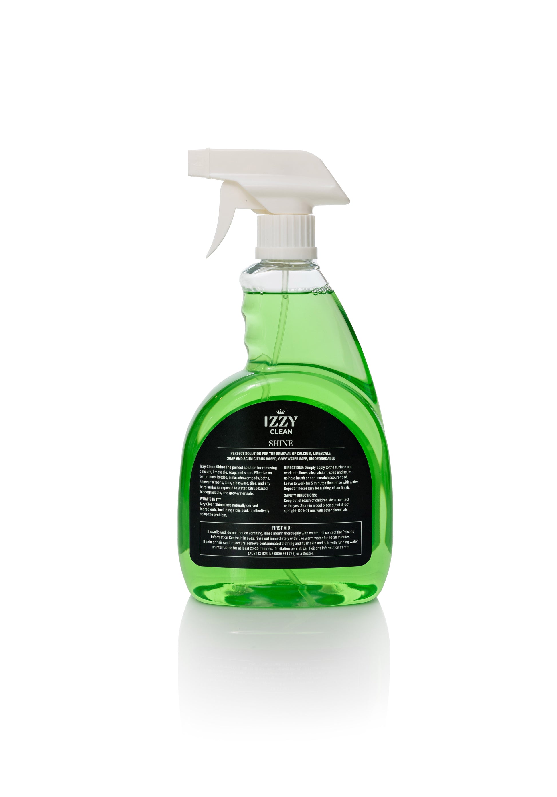 What is IZZY CLEAN SHINE? A fast-acting calcium dissolver, IZZY CLEAN SHINE removes soap scum buildup in bathrooms and on glass/windows.